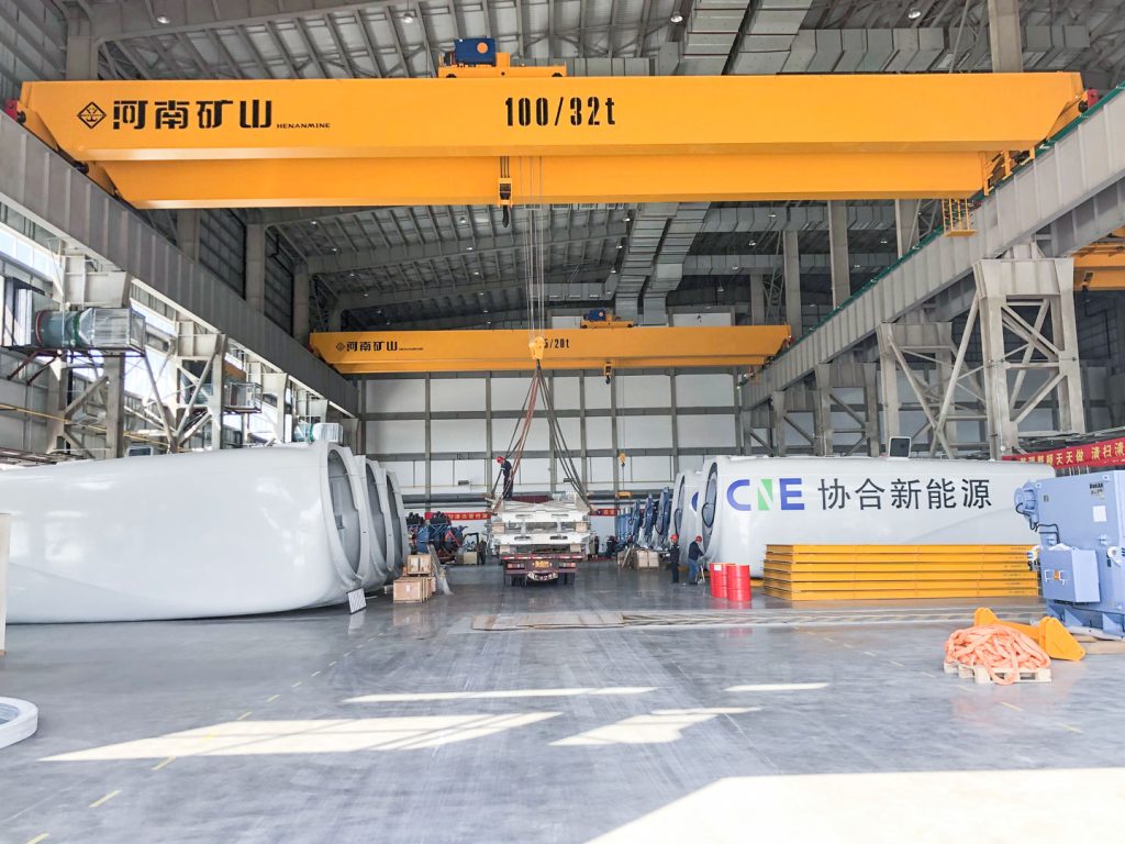 随着国家碳达峰、碳中和战略目标日渐落地,河南矿山承制了一批大跨度、高精度、低能耗新型绿色化起重机产品,应用于运达风力发电主机生产及装配,为我国风电清洁能源产业的发展提供技术和装备支撑。