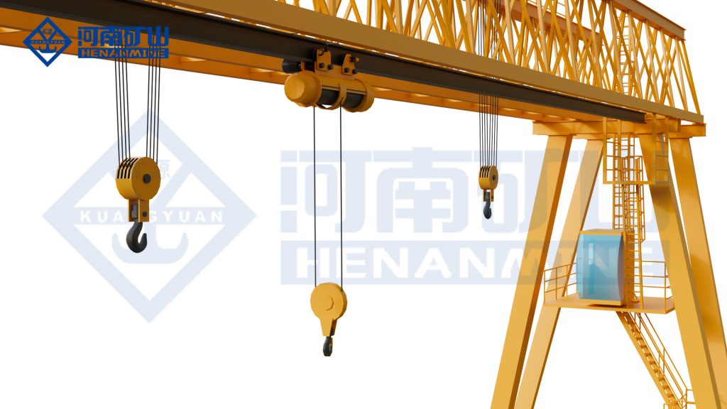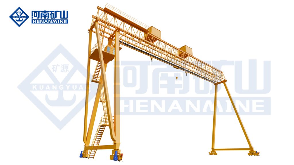 双小车桁架门式起重机2025-07-092025-11-21首页 > 产品中心 > 通用门式起重机 > 双小车桁架门式起重机 双小车工程门机1双小车工程门机2双小车工程门机3 双小车桁架门式起重机 桁架门式起重机(以下简称起重机)是目前应用较为广泛的起重机械,通过两侧支腿支承在地面轨道上运行,可在一般性露天作业环境中以间歇、重复方式装卸和搬运物料及设备,具备垂直升降、纵向和横向移动功能。根据不同需求支腿两侧带有悬臂或单侧带有悬臂,便于从跨中转运物品到跨外,也可不设悬臂。工作级别A3~A5。 型式实验规格:MEH 型式试验产品名称:通用门式起重机 优势/核心功能 01 起升、运行采用变频调速,起动、制动平稳,被吊物体准确定位; 02 采用分段式结构,主梁、端梁等部件可满足狭窄区域运输,现场通过螺栓快速组装,安装周期短。 03 主梁跨度可根据覆盖宽阔的作业区域需求设计,起升高度可灵活调整,既能够吊装地面货物,也能完成高空堆垛或设备安装。 产品图例 双小车桁架门式起重机 双小车桁架门式起重机 双小车桁架门式起重机