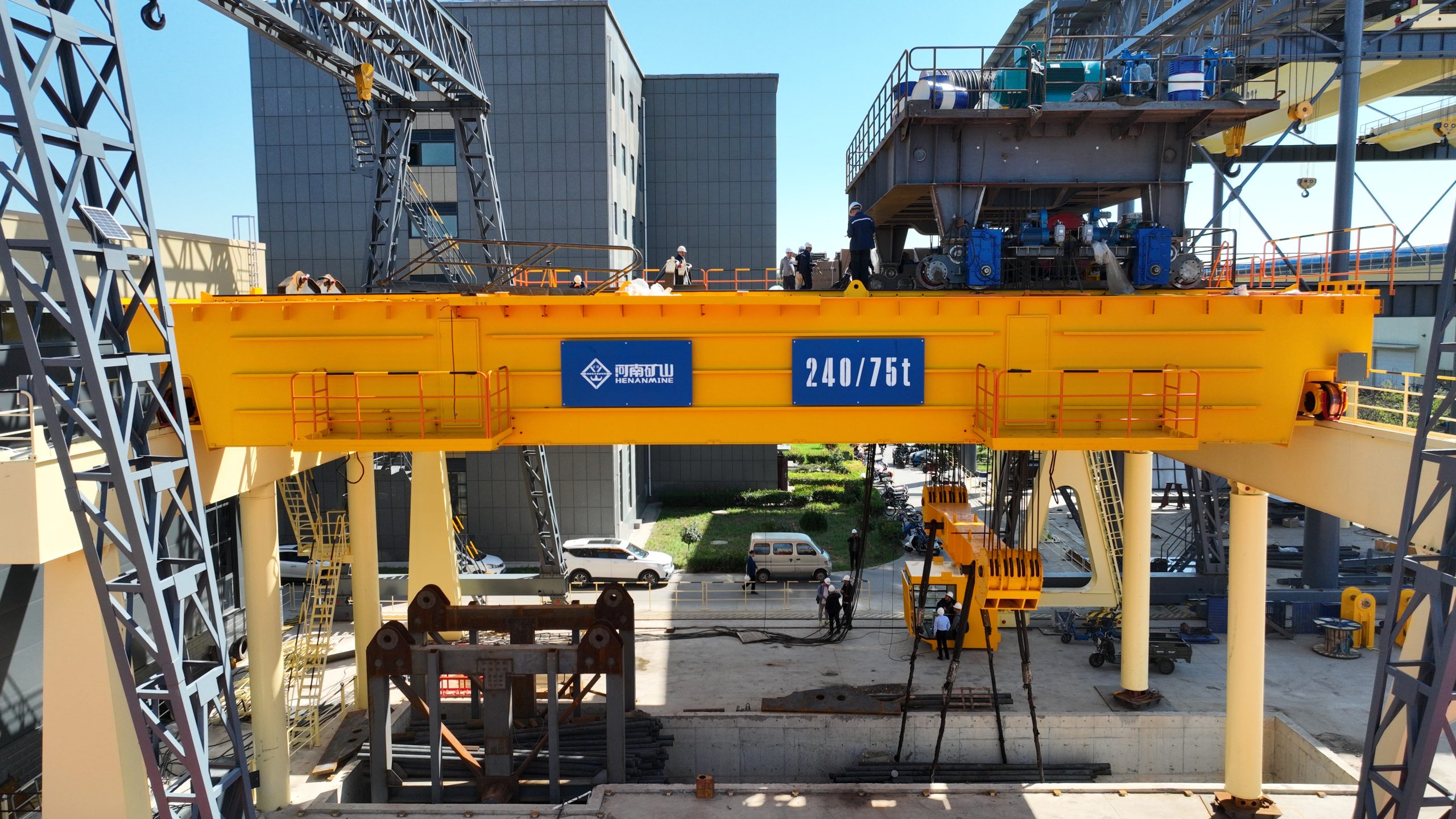冶金桥式起重机(以下简称起重机)是金属冶炼环境中的专用起重设备,可在冶炼过程中以间歇、重复方式进行物品的吊运、熔融金属的浇注及倾翻等作业,具备垂直升降、纵向和横向移动功能。取物装置为龙门式吊具或吊钩,工作级别A6~A8。采用四梁四(六)轨、双小车结构形式,主小车取物装置为双吊点固定龙门式板钩,副小车取物装置为锻造吊钩,各自在单独的轨道上运行,可实现熔融金属的吊运、翻包及一般物品的吊运等作业。