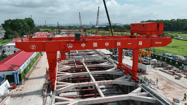 我国粤港澳大湾区广州都市圈跨市城际铁路珠三角城际轨道交通广佛环线佛山西站至广州北站段(以下简称“广佛环线”),是珠三角城际轨道交通网重要组成部分,项目建成后将助力形成完整的广佛城际轨道交通大环线。在该项目现场,由河南矿山承制的2台100吨地铁出渣专用双主梁门式起重机,用于地铁施工过程中吊运渣土及物品,是目前国内应用于该领域较大吨位的起重机成套设备。