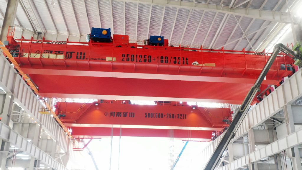 首页 > 产品中心 > 通用桥式起重机 > 双小车吊钩桥式起重机 双小车吊钩桥式起重机3双小车吊钩桥式起重机2双小车吊钩桥式起重机1 双小车吊钩桥式起重机 通用桥式起重机(以下简称起重机)是目前应用较为广泛的起重机械,可在一般作业环境中以间歇、重复方式装卸和搬运物料及设备,具备垂直升降、纵向和横向移动功能。取物装置分为吊钩、抓斗、电磁吸盘等形式,以满足用户吊运多种类型物料的需求。工作级别A1~A8。双小车可抬吊和单独工作。 型式实验规格:QE 型式试验产品名称:通用桥式起重机 优势/核心功能 01 任意组合,控制方式多选;多种组合控制方式可选,客户使用更便利。 02 双小车控制采用编码器、CI卡变频器等先进技术,双小车可单独使用,也可联合作业。 03 采用车轮锻造碾压复合工艺,车轮使用寿命相比传统的锻造车轮工艺提高20%左右。 产品图例 双小车双梁桥式 双小车双梁桥式 双小车双梁桥式 双小车双梁桥式