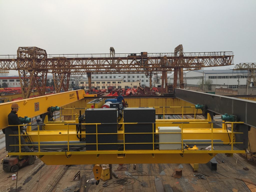 首页 > 产品中心 > 通用桥式起重机 > 新型电动双梁悬挂起重机 新型电动双梁悬挂起重机1新型电动双梁悬挂起重机2新型电动双梁悬挂起重机3 新型电动双梁悬挂起重机 新型电动双梁悬挂起重机的两根平行主梁通过高强度螺栓连接端梁,由大车运行机构、起升机构、电控系统及导线装置组成,直接悬挂于厂房屋顶轨道,无需地面支撑,节省空间。 型式实验规格:KSQX 型式试验产品名称:通用桥式起重机 优势/核心功能 01 具备变频调速、电子防摇摆、定位精度高,以及过载保护、限位保护、紧急停车等多重安全功能,可配备侧端悬臂以扩展作业范围至跨距之外。 02 通过轻量化设计和紧凑结构,降低厂房承重需求及建造成本,净空高度低且吊钩至墙面极限距离小,提升空间利用率。 03 可配合远程监控与故障诊断系统,实现低故障率和简便维护,同时支持智能功能拓展,满足高精度、高效率作业需求。 产品图例 新型双梁悬挂 新型双梁悬挂