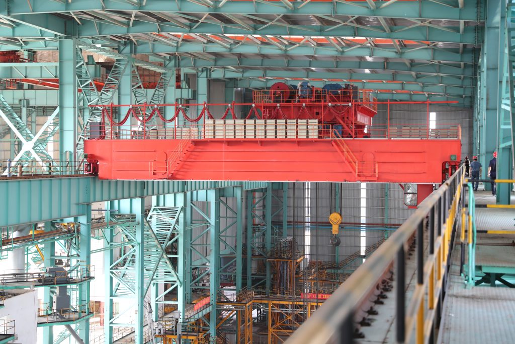 首页 > 产品中心 > 冶金桥式起重机 > 双梁铸造起重机 双梁铸造起重机3双梁铸造起重机1双梁铸造起重机2 双梁铸造起重机 铸造起重机(以下简称起重机)是金属冶炼环境中的专用起重设备,可在冶炼过程中以间歇、重复方式进行熔融金属的转运、浇注及兑铁水等作业,具备垂直升降、纵向和横向移动功能。取物装置为龙门式吊具,工作级别A7。 型式实验规格:YZ 型式试验产品名称:冶金桥式起重机 优势/核心功能 01 联动台加装PLC模块及人机界面触摸屏配有WLK型主令控制器,手感明确,档位清晰,有零位自复和锁定装置。起升采用定子调压调速,运行采用变频调速,起动、制动平稳,被吊物体准确定位。 02 主梁、端梁等关键结构件采取隔热处理防护护措施,可承受高温辐射,确保在高温车间环境中长期稳定运行。45º剖分结构车轮固定瓦块采用大型镗床整体加工,避免车轮啃轨,保证了车轮安装精度,使起重机的整体使用寿命更长。 03 起重机整车配备安全监控系统,全车采用PLC+变频器通讯控制,主要受力构件通过有限元精准分析设计,使设备运行更加平稳。起升机构为防止吊钩冲顶设置双保护。 产品图例 双梁铸造起重机 双梁铸造起重机 双梁铸造起重机 双梁铸造起重机