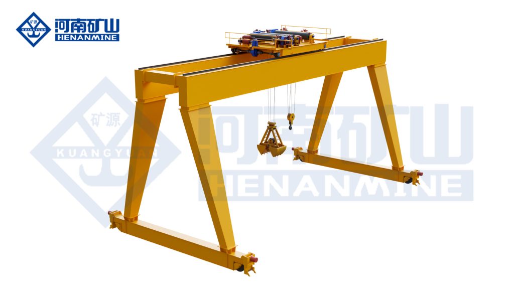 首页 > 产品中心 > 通用门式起重机 > 抓斗吊钩两用门式起重机 抓斗吊钩两用门式起重机1抓斗吊钩两用门式起重机2抓斗吊钩两用门式起重机3 抓斗吊钩两用门式起重机 抓斗吊钩两用门式起重机是一种多功能起重设备,通过快速更换装置实现抓斗与吊钩的切换,适用于散料和件杂货的混合装卸场景。配置专用快速连接机构,可在抓斗(处理散料如煤炭、矿石)和吊钩(吊运件杂货)间灵活切换。抓斗通过开闭绳与支持绳协同控制物料抓取,吊钩模式则用于常规吊装作业。 型式实验规格:MN 型式试验产品名称:通用门式起重机 优势/核心功能 01 通过先进变频控制技术,使整机故障率小、运行速度快、吊运效率高。 02 抓斗的开合动作通过液压或机械传动实现,响应速度快(单次开合时间可控制在 3-5 秒),配合起重机的起升、运行机构,能实现高频次连续作业。 03 采用车轮锻造碾压复合工艺,鼓形齿联轴器,模块化设计,核心部件可快速更换。 产品图例 抓斗吊钩两用门式起重机 抓斗吊钩两用门式起重机 抓斗吊钩两用门式起重机 抓斗吊钩两用门式起重机