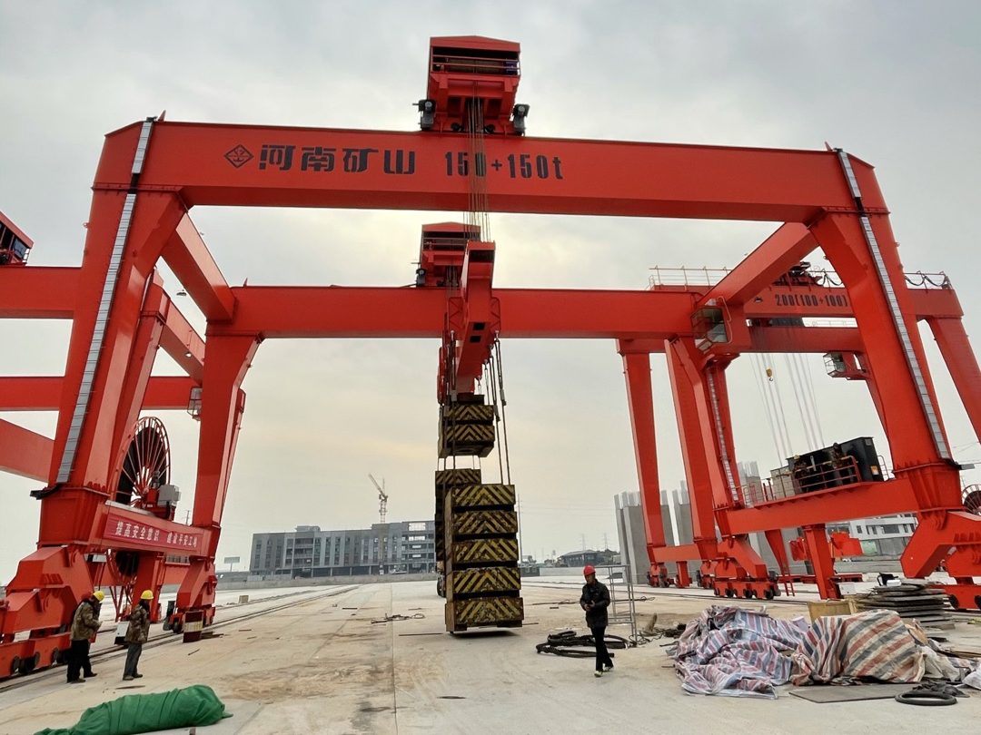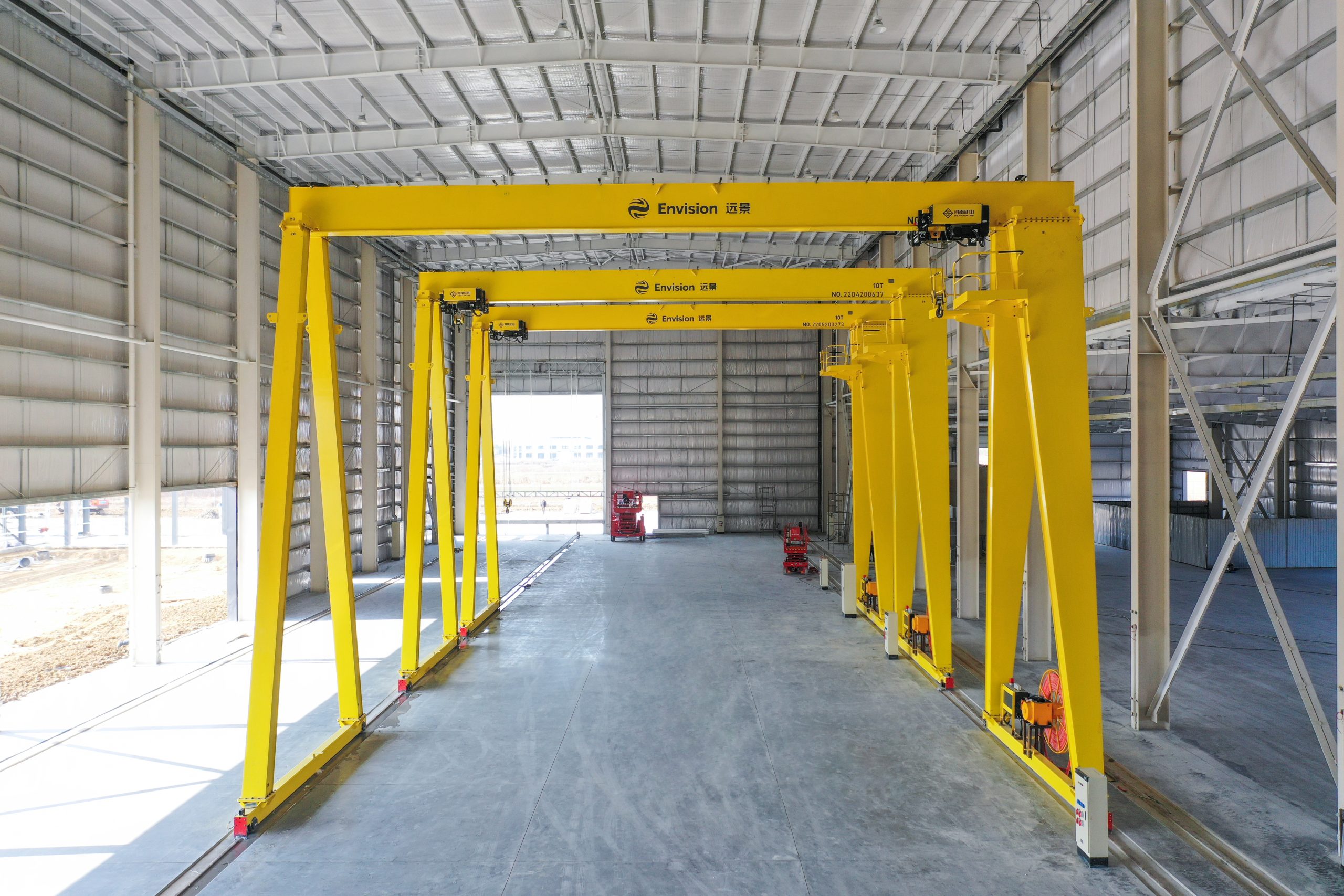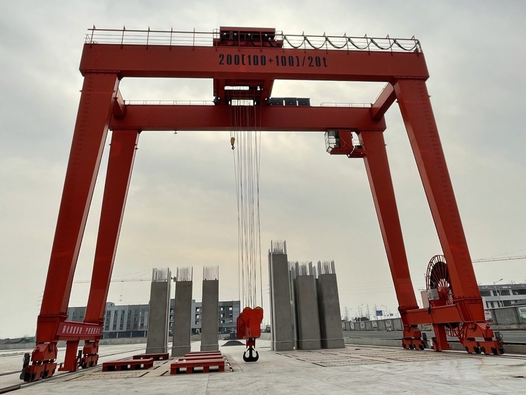 电动葫芦门式起重机(以下简称起重机)是目前应用较为广泛的起重机械,起升机构为电动葫芦,通过两侧支腿支承在地面轨道上运行,可在一般性作业环境中以间歇、重复方式装卸和搬运物料及设备,具备垂直升降、纵向和横向移动功能。取物装置分为吊钩、抓斗、电磁吸盘等形式,以满足用户吊运多种类型物料的需求。支腿外侧带有悬臂,便于从跨间转运物品到跨外,也可不设悬臂。工作级别A3~A5。
